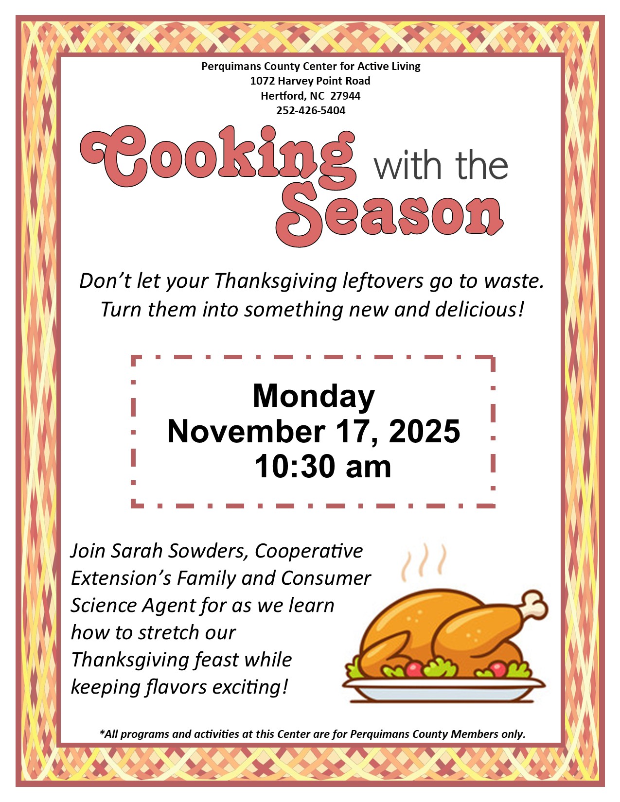 Mon Oct 13 @10:30AM Cooking with the Season |